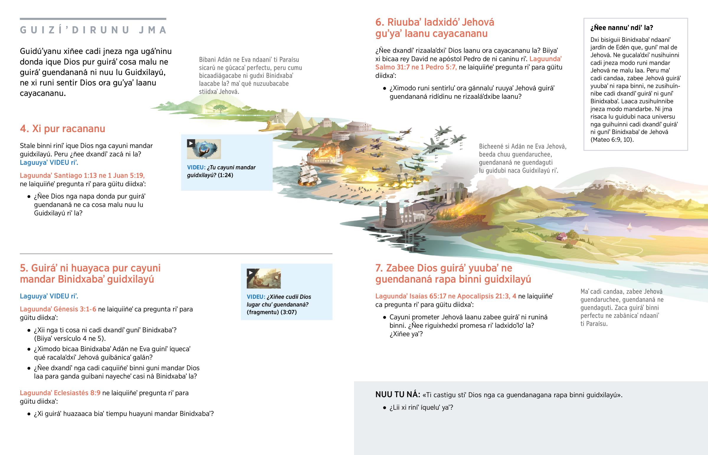 Maʼ cadi candaa, zabee Jehová guendaruchee, guendananá ne guendaguti. Zaca guiráʼ binni perfectu ne zabánicaʼ ndaaniʼ ti Paraísu.