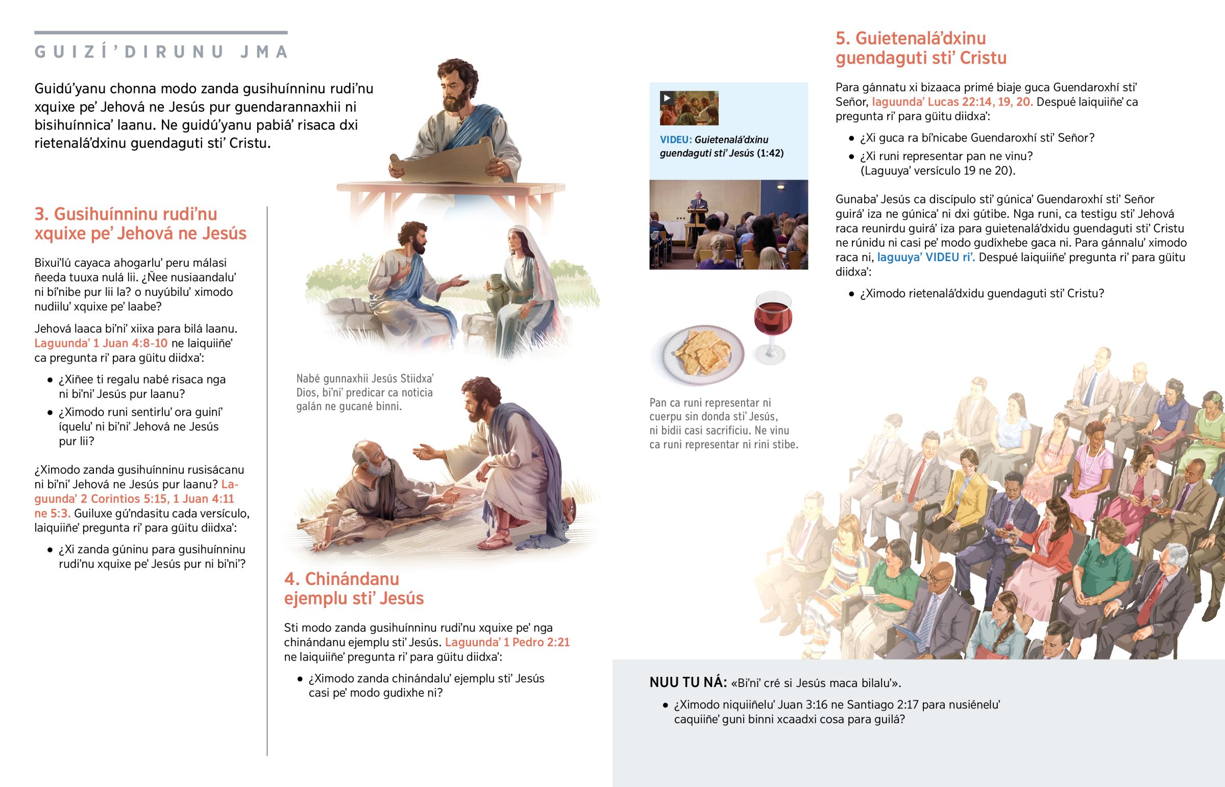 Gunabaʼ Jesús ca discípulo stiʼ gúnicaʼ Guendaroxhí stiʼ Señor guiráʼ iza ne gúnicaʼ ni dxi gútibe. Nga runi, ca testigu stiʼ Jehová raca reunirdu guiráʼ iza para guietenaláʼdxidu guendaguti stiʼ Cristu ne rúnidu ni casi peʼ modo gudíxhebe gaca ni. Para gánnaluʼ ximodo raca ni, laguuyaʼ VIDEU riʼ. Despué laiquiiñeʼ pregunta riʼ para güitu diidxaʼ: