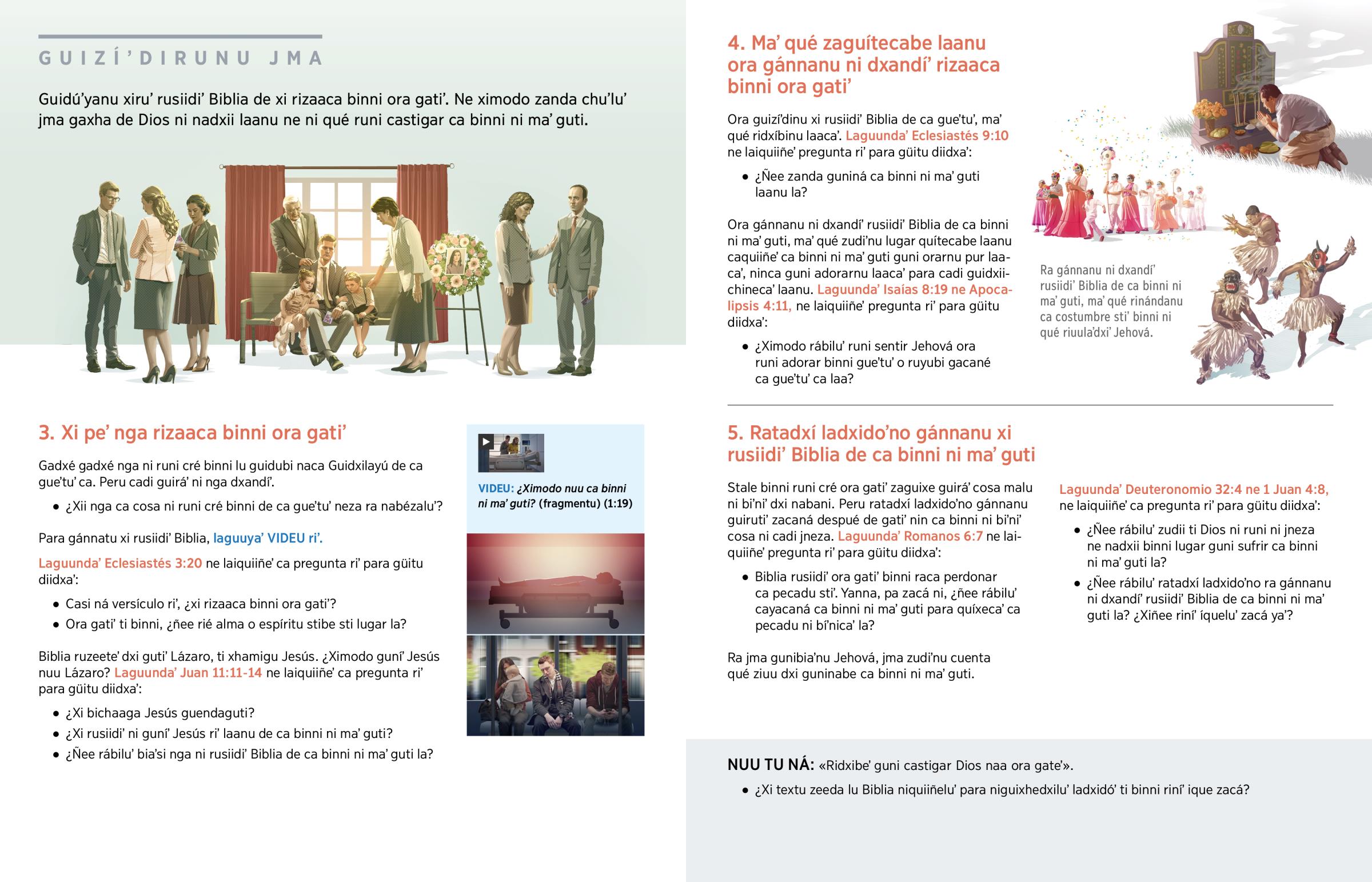 Guidúʼyanu xiruʼ rusiidiʼ Biblia de xi rizaaca binni ora gatiʼ. Ne ximodo zanda chuʼluʼ jma gaxha de Dios ni nadxii laanu ne ni qué runi castigar ca binni ni maʼ guti.