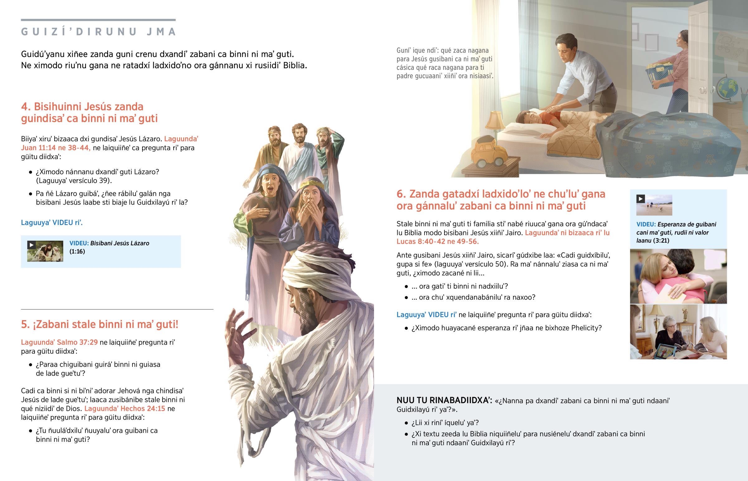 Dxi guyuu Jesús ndaaniʼ Guidxilayú riʼ, bidii Dios laabe poder para gusibánibe ca binni ni maʼ guti. Nga runi, bisibani Jesús ti dxaapahuiiniʼ de 12 iza ne xiiñiʼ ti viuda (Marcos 5:41, 42; Lucas 7:12-15). Despué guti Lázaro xhamígube. Neca maʼ ziné Lázaro tapa gubidxa de bicaachicabe laa, bisibani Jesús laabe. Despué de guniʼné Jesús Dios, bicaa ti ridxi: «¡Lázaro biree!». Ne «óraque biree hombre ni guti que», ¡ne maʼ nabani! (Juan 11:43, 44). Bixuiʼlú pabiáʼ nayecheʼ guyuu familia stiʼ Lázaro ne ca xhamigu ora bíʼyacaʼ ni bizaaca que.