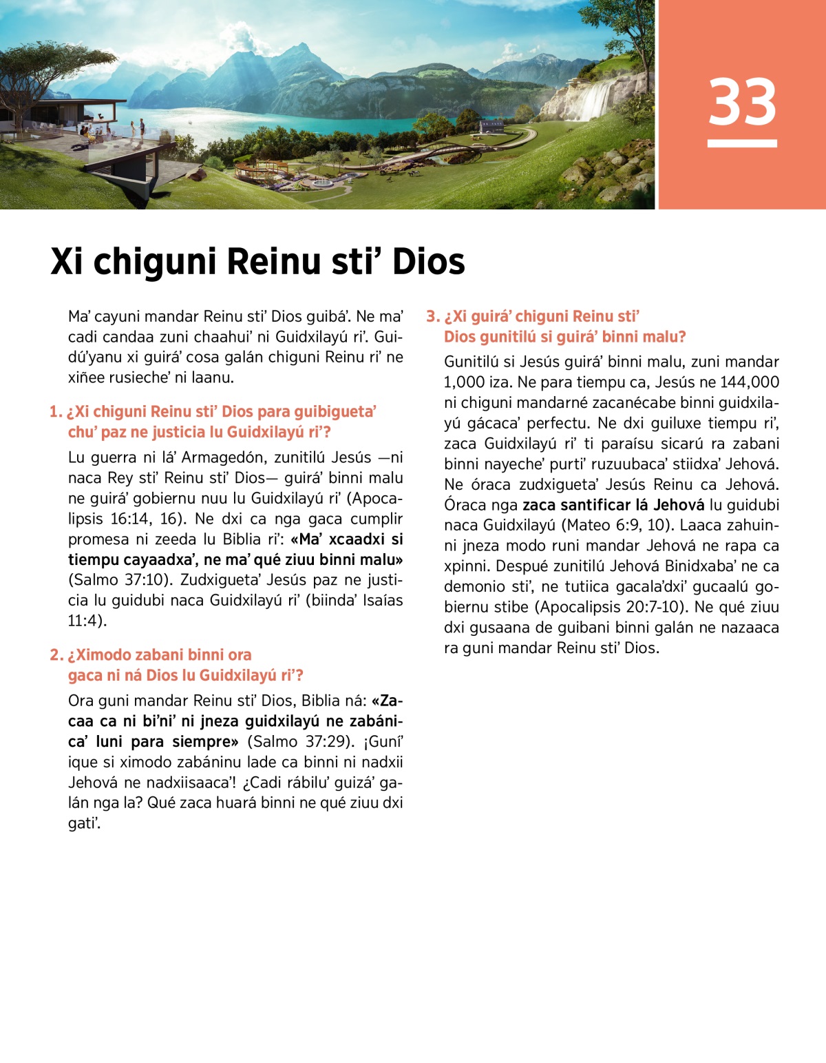 Lección 33. Caadxi binni ni maʼ nuu ndaaniʼ Guidxilayú riʼ ne maʼ nácani ti paraísu.