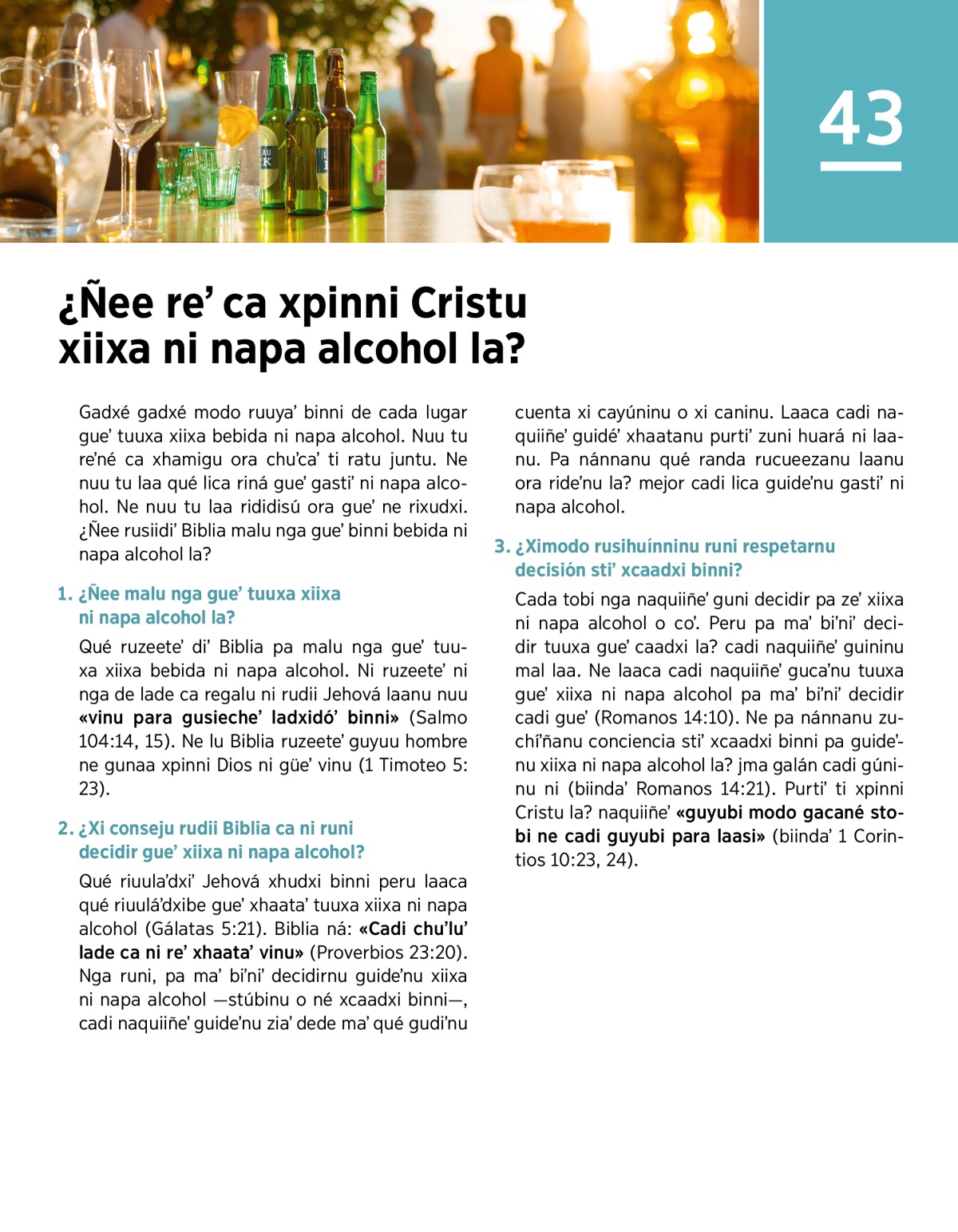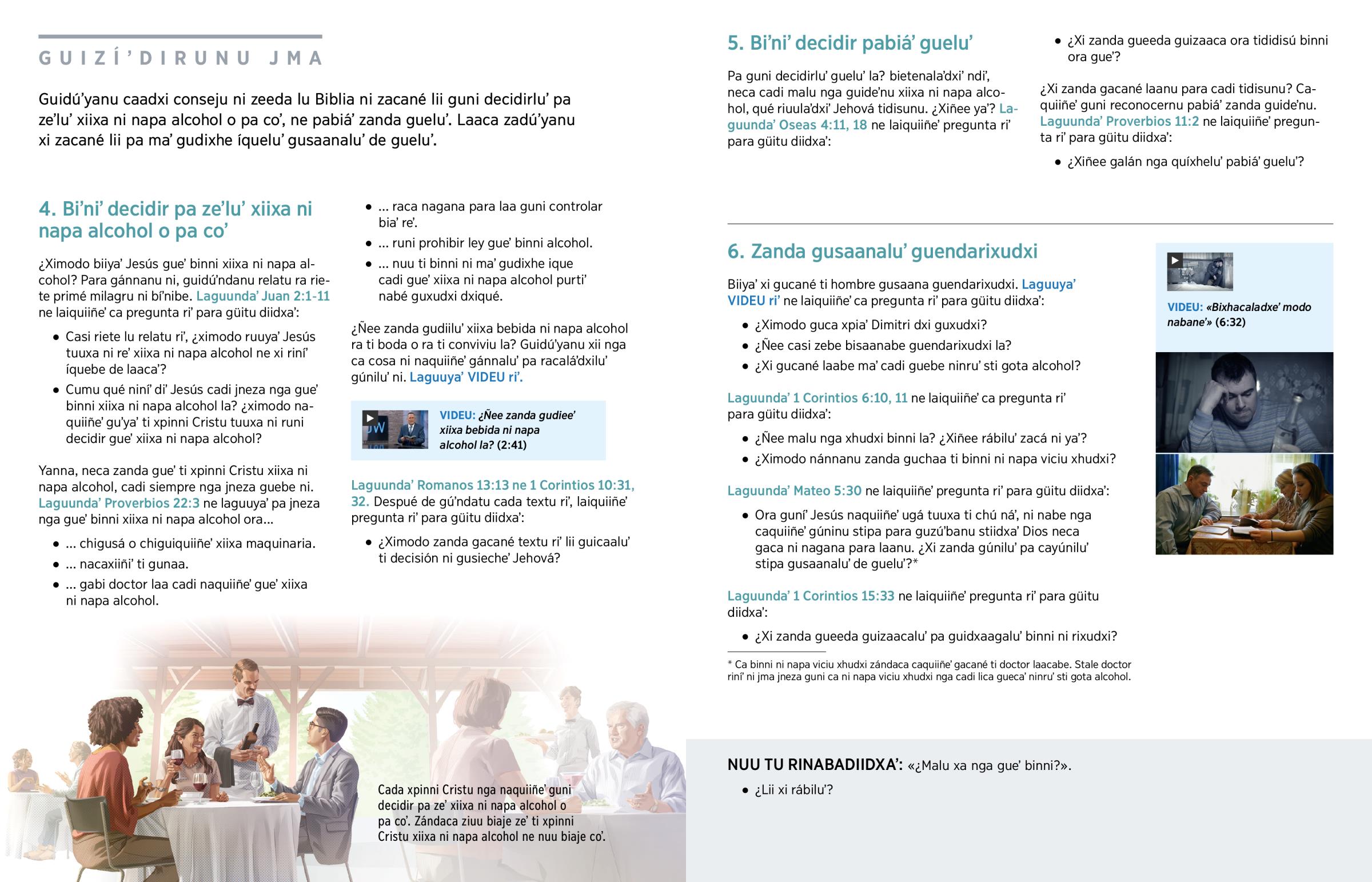 «Ximodo zanda guiníʼneluʼ ca xiiñiluʼ de bebida ni napa alcohol» (Tema ni zeeda lu jw.org)