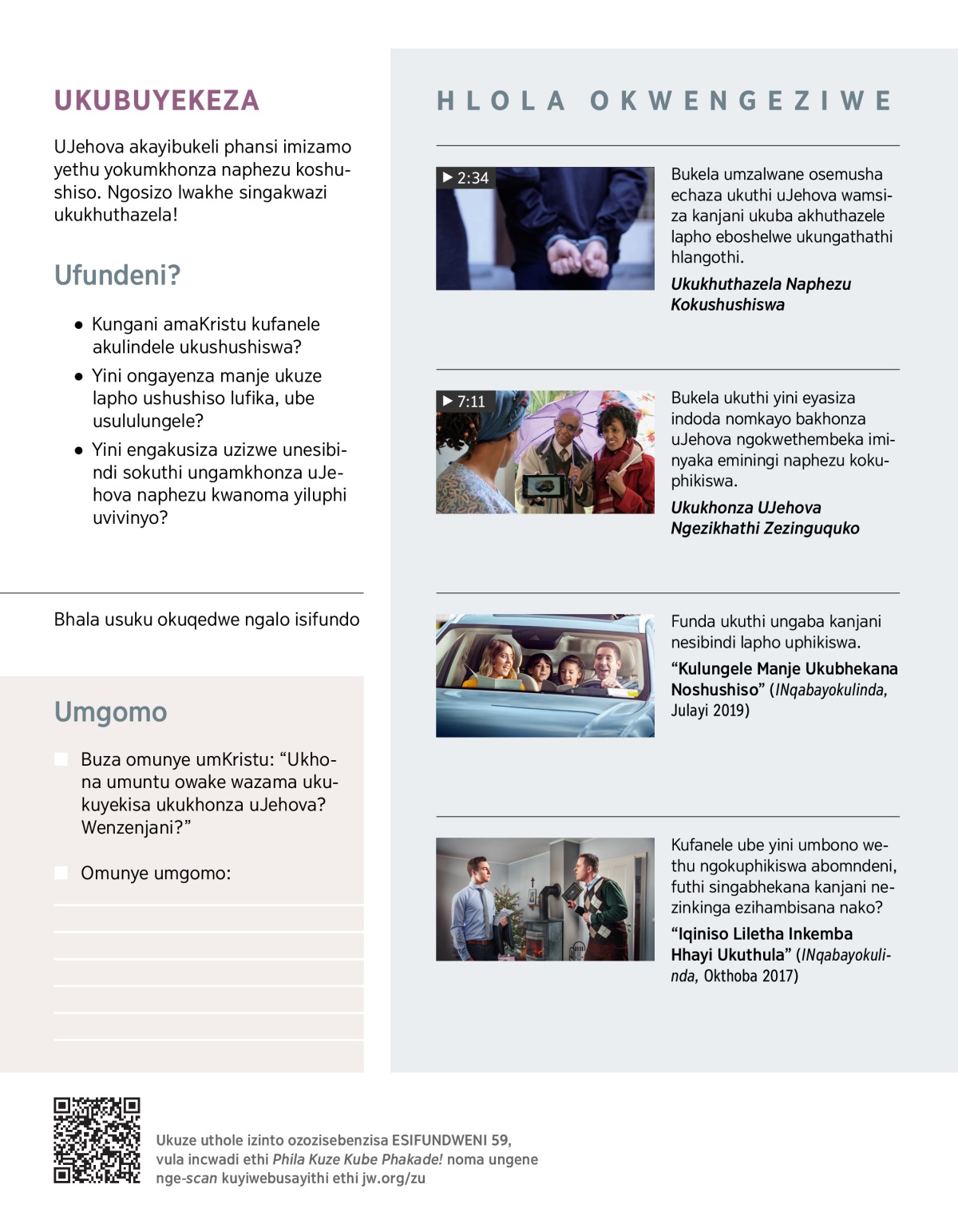 OFakazi BakaJehova abangalingani ngeminyaka nabavela ezizindeni ezihlukahlukene, baye baqhubeka ngobuqotho bekhonza uJehova ngisho noma beshushiswa. Ukuze ubone ukuthi yini eyabasiza, dlalani IVIDIYO. Ngemva kwalokho, xoxani ngombuzo olandelayo.